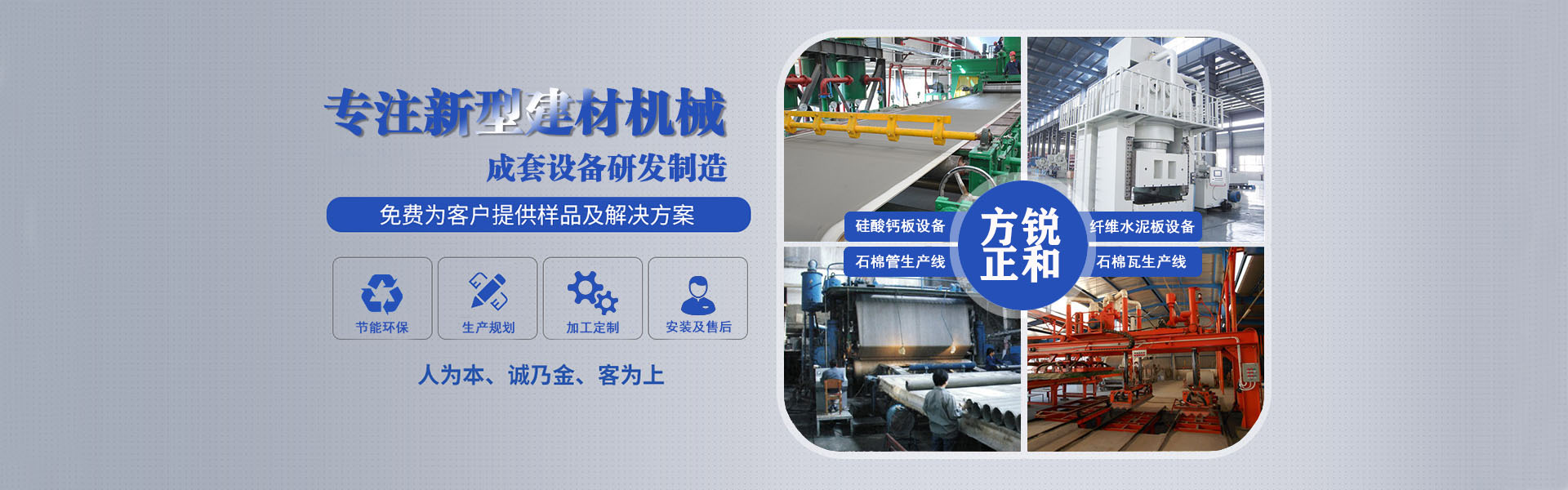 鄭州方銳正和機(jī)械制造有限公司在硅酸鈣板設(shè)備、水泥纖維壓力板設(shè)備、石棉瓦設(shè)備和石棉管設(shè)備等新型建材領(lǐng)域有豐富的經(jīng)驗(yàn)成熟的工藝,公司位于河南省鄭州市鞏義市芝田鎮(zhèn),多年來(lái),公司匯集了一大批銳意進(jìn)取并代表著行業(yè)水平的管理人員。公司非常重視技術(shù)交流與合作,引進(jìn)了發(fā)達(dá)的好技術(shù)和工藝,在技術(shù)本土化的基礎(chǔ)上,我們一直在理性的探索,不斷創(chuàng)新,開(kāi)發(fā)適合客戶(hù)需求的新產(chǎn)品。公司秉承以“以人才為根本,以市場(chǎng)為導(dǎo)向,以科技為基礎(chǔ),以產(chǎn)業(yè)為標(biāo)準(zhǔn)、以質(zhì)量為保證、以世界為目標(biāo)?!钡慕?jīng)營(yíng)方針力求的設(shè)備服務(wù)于社會(huì)而努力。我公司經(jīng)過(guò)多年不斷的努力,發(fā)展壯大,成為國(guó)內(nèi)設(shè)備廠(chǎng)家。